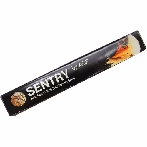 Sentry batongen har ett nytt gummibeklätt Strike Force® handtag med 4130 stål rör, ändtopp av kolstål, svart nickel överdrag (Black Chrome).