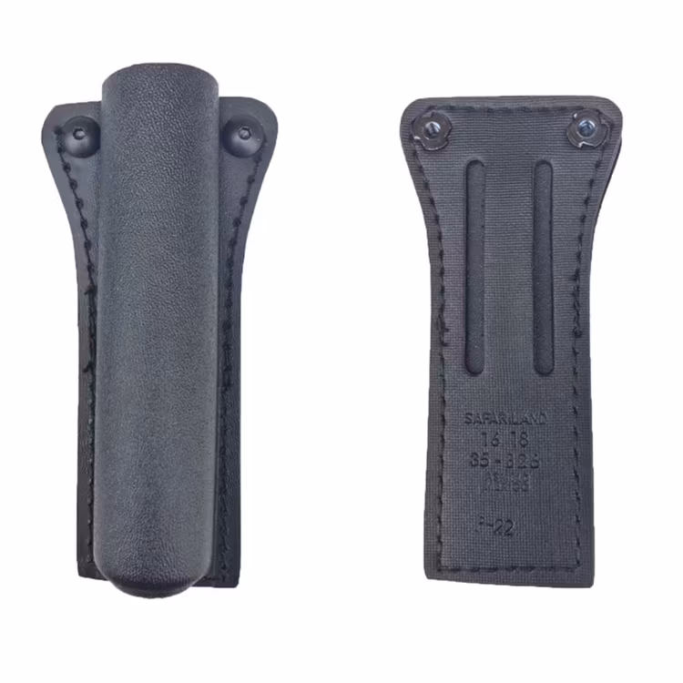 Batonghållare från Safariland för främst ASP/Bonowi/B&T Triton batongerna. Avsedd för att bäras på ett utrustningsbälte av standard modell (max ca 50 mm bredd). Fästet är tillverkat av tjockt och slitstarkt läder av hög kvalitet. Denna modell används numera även av Svensk polis.