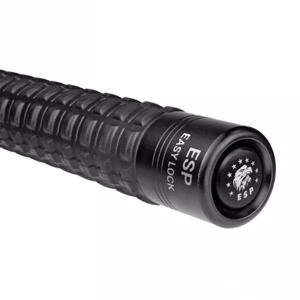 ESP knapplåst härdad expanderbar polisbatong med infällningsknapp (Easy Lock) samt med runt ändstycke.
