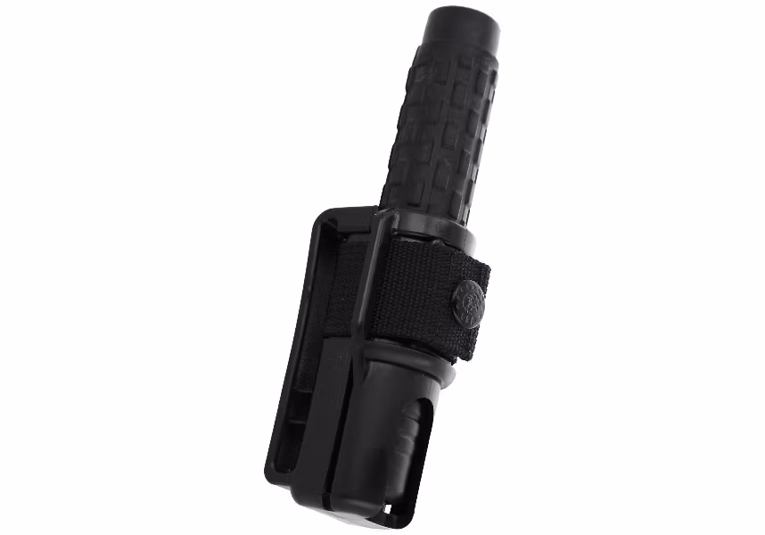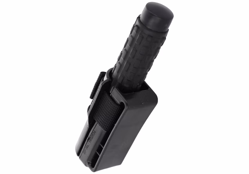 Holster - patented design allows for full 360° handle rotation and locking in one of 16 positions. The baton can be carried folded or unfolded in vertical, horizontal or any other position. The case is made of heavy-duty, hardened polypropylene in black.