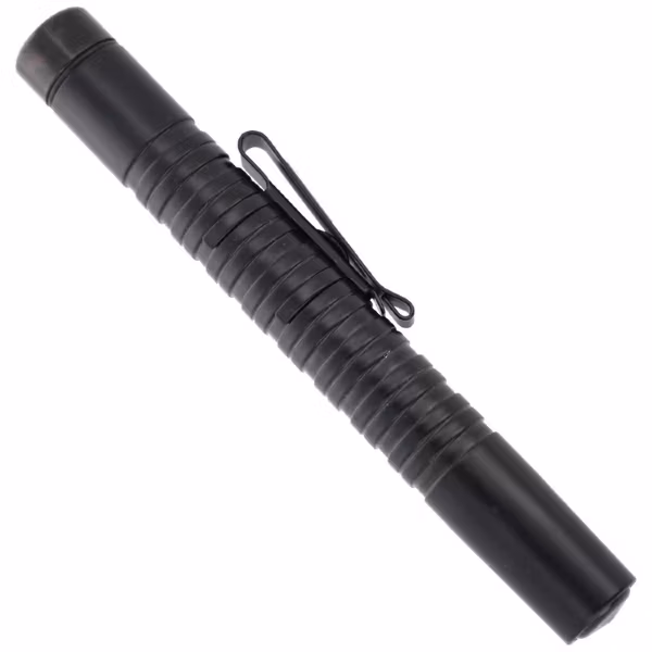 Den tvärgående räfflingen ger ett fast och säkert grepp om handtaget och hjälper till vid fixering av byxklippet . Byxklippet kan godtyckligt flyttas efter användarens behov eller tas bort helt. Batongen kan utrustas med hela ESP batongtillbehörs linje som vi erbjuder, men med undantag för batonghållare. Batongen passar inte i någon hållare utan är avsedd för dolt bärande i fickan eller på kroppen utan hållare med bara en metallklämma.