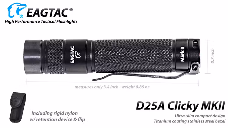 Titaniumkätt bältesclips ingår. Hölster och handlovsrem ingår. Taktisk strömbrytare och snabbjustering av 2 olika grupper av effektnivåer genom vridning av lamphuvud. Vattentålig enl. IPX8 max 2 m djup. Max ljusnivå 405 lumens med en räckvidd på upp till 69 m. Brinntid upp till 150 timmar.