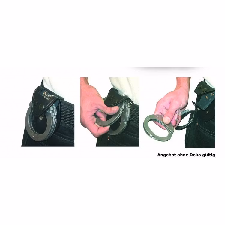 Handfängslen hängs på en integrerad krok på insidan av fickan. Mycket snabbt och lätt att lossa sina fängsel. Passar de flesta vanliga standard fängsel med kedja. Passar bälten med en bredd upp till 58mm. Rekommenderat är att bära denna hållare på framsidan kroppen.