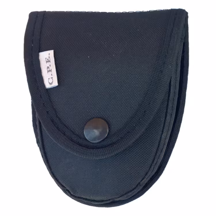 Handfängselhållare i cordura med lock som säkras med tryckknapp.