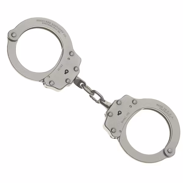 Polisens godkända tjänstehandfängsel med blank nickelplätering som inte flagnar, hög kvalitet som varar en livstid samt NIJ godkända.