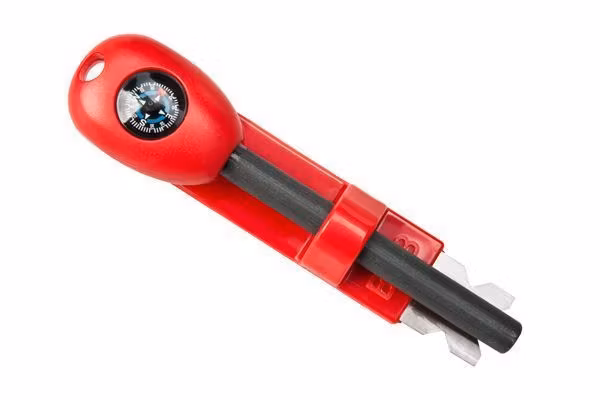 Det ursprungliga tändstålet har blivit ännu bättre. Denna nya konstruktioner är bekvämare och säkrare att använda. Den har en liten vätskefylld knappkompass i handtaget.
