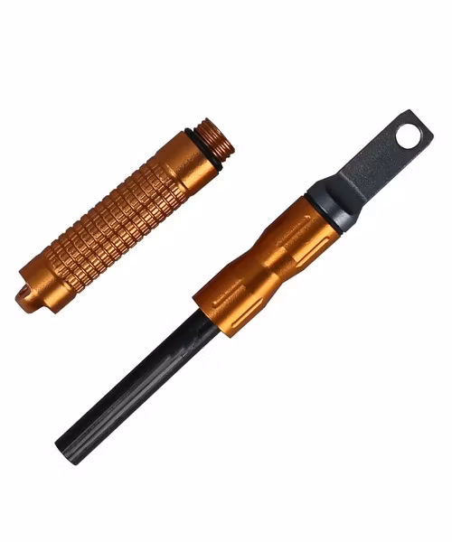 Högkvalitativt eldstål / tändstål som packas ner i sin egen, vattentäta behållare som även är lätt att bära med sig.