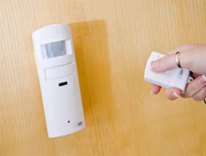 Rörelselarmet av och på aktiveras enkelt med den medföljande fjärrkontrollen som du kan ställa in med din egen personliga säkerhets kod. Du har 30 sekunder på dig att lämna rummet då du aktiverat rörelselarmet samt 4 sekunder på dig att stänga av det när rörelselarmet upptäckt rörelse.