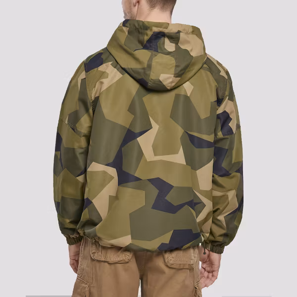 Brandit Herr skaljacka i klassisk M90 camo. En tålig, vind- vattenavvisande skaljacka med praktiska fickor för förvaring, ventilerande meshfoder och ventilationsöppningar på sidan.
