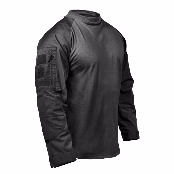 Rothcos Tactical Airsoft Camo Combat Shirt är gjord med lätt tyg och andningsbar funktion. Airsoft-skjortan har många olika hjälpmedel, såsom en skenande turtleneck, glinttejphållare för IR-tejp och förvaringsfickor med blixtlås. Denna taktiska tröja har också anti-nötningsvadderade armbågslappar för extra stöd under en intensiv airsoft-match. Ögla på ärmfickor gör att namn, rang och flagga kan fästas för fullständig anpassning.