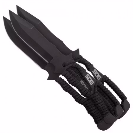 Mycket prisvärt kastknivset med 3 stycken kvalitetsknivar från SOG. Knivarna är tillverkade i ett tåligt och pålitligt stål. Kastknivarna är välbalanserade och ligger perfekt i handen. Dessa kastknivar passar både nybörjare och proffskastare. Knivskaftet är inlindat i paracord (fällskärmslina) vilket ger ett skönt och behagligt grepp.