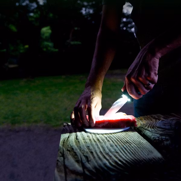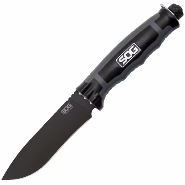 En ny medlem i SOGs Bladelight-serie. Kniven har 6 mycket ljusstarka LED-ljus (3 på vardera sida om bladet) med en uppmätt ljusstyrka på 20 lumen. Knivens blad i rostfritt 8CR13MOV är förankrat i handtaget som är tillverkat i glasfiberförstärkt svart nylon. Lamporna drivs med ett AAA-batteri som ger över 4 timmar brinntid.