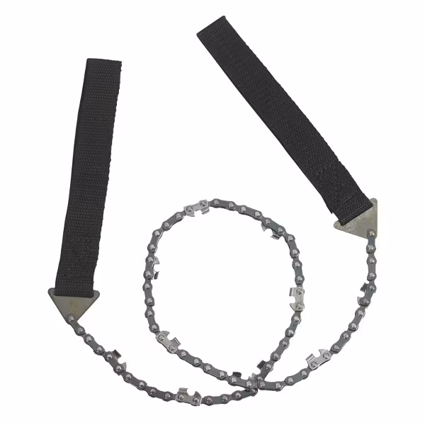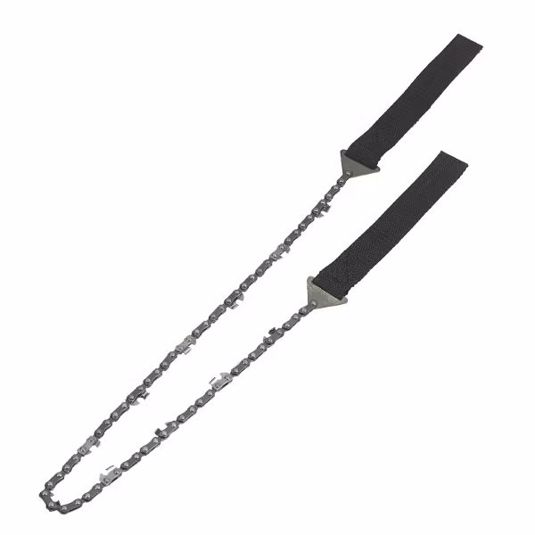 This Survival Chain Saw is an excellent tool. Easy to pack away, lightweight & heavy duty Hand Chain Saw, ideal for building shelters and for cutting firewood in survival situations as well as for campers, backpackers, fishermen, hikers, homeowners or survivalists. A superb hand operated pocket sized survival chain saw made from riveted sections of bi-directional chain saw style cutting teeth.