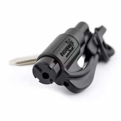 Resqme har du lätt tillgänglig på tändningsnyckeln och du krossar sidorutorna genom att du pressar verktyget mot rutans yta och trycker till - utan att behöva använda stor kraft eller slag.