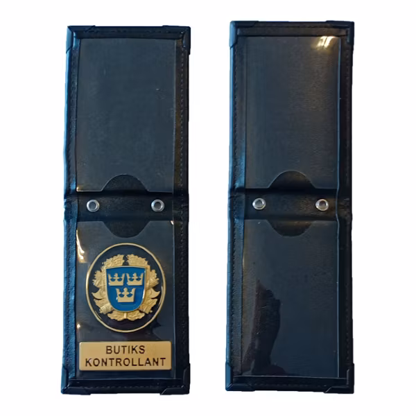 Ett specialtillverkat ID-fodral med bricka för att skydda tjänstekort, förordnande eller körkort. Fodralet är tillverkat av de bästa material som går att uppbringa på den internationella marknaden. Precis som med polisens senaste modell av ID-fodral går detta fodral att hänga i en kulkedja (diameter 3,7 mm) eller liknande runt halsen. Två öljetter är monterade för detta ändamål, kedja ingår dock inte. I facket som är anpassat till tjänstekort passar alla ID-kort och liknande som har samma storlek (54 x 86 mm) som ett körkort.