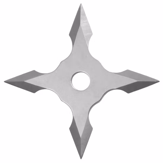 Klassisk replika modell av en fyruddig Shuriken kaststjärna som är ett japanskt kastvapen som användes av ninjakrigare.
