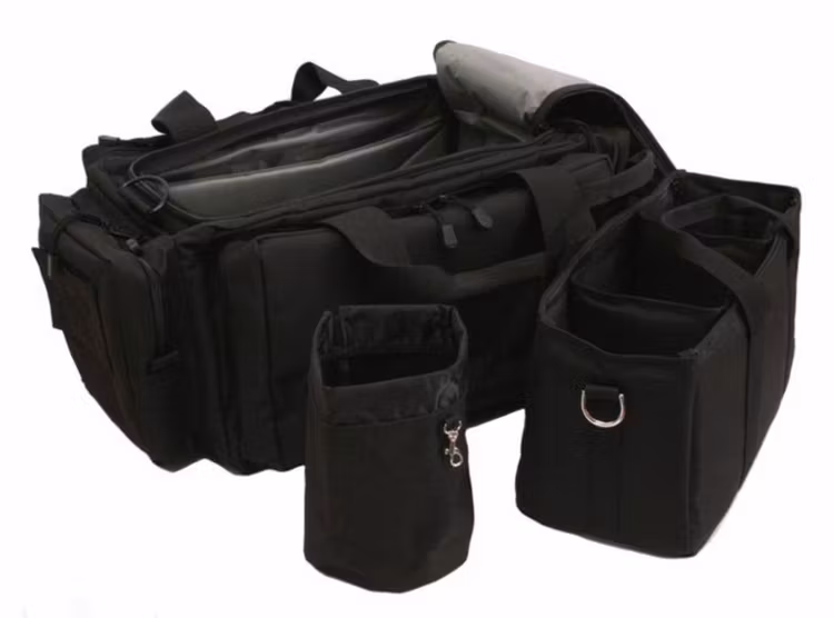 Tillverkas av slitstark nylon, denna väska är vattenavvisande. Dess utsida har stora utvändiga fickor med två fickor som är låsbara, och en som har hållare för upp till 8st magasin. Fyra små yttre fickor med blixtlåsstängning samt för vattenflaska. ett avtagbart inre fack 42 x 15 x 22cm. Huvudfack med underavdelningar som kan justeras och 2 fack med blixtlåsstängning. Det medföljer flera fack och påsar för extra förvaring perfekt för gevär, pistol, magasin eller ammunition. Insidan av väskan är fodrad, botten stoppad för ökad hållbarhet och skydd. vadderad axelrem ingår. Alla blixtlås kan låsas med ett hänglås med 4,5 mm. Lätt att öppna dragkedjorna även med handskar.