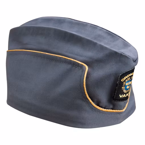Båtmössa för ordningsvakter. Försedd med litet ov-emblem.