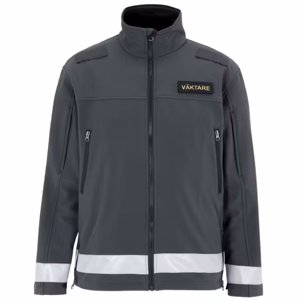 Snygg softshelljacka i kortare modell för väktare, försedd med emblem väktare vänster bröst.