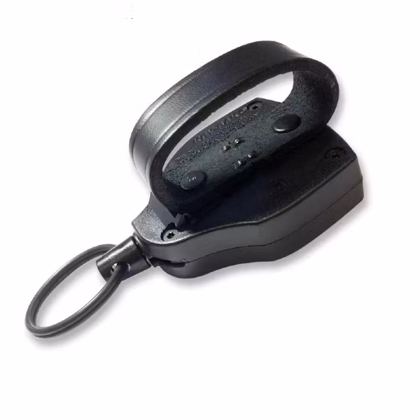 Nyckelhållaren är gjord för att snabbt kunna dra fram objektet som sitter i nyckelhållaren. Nyckelhållaren har en slitstark kevlar tråd med längd upp till 122cm. Lyfter ca 280gram. Läder sölja för att fästa nyckelhållaren i bältet som passar upp till 50mm breda bälten medföljer. Träs snabbt och enkelt på bältet och ser mycket snyggt ut.