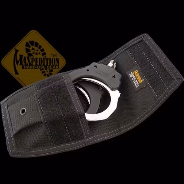 MOLLE-kompatibel ficka för två par handfängsel som passar utmärkt på den svenska stridsvästen. Kardborre på framsidan där du exempelvis kan fästa namn eller ID-brickor.