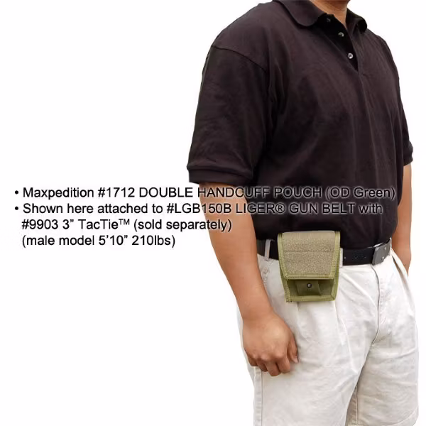 Double Handcuff Pouch fästs på väst eller väska med korta TacTie spännen som säljs separat.