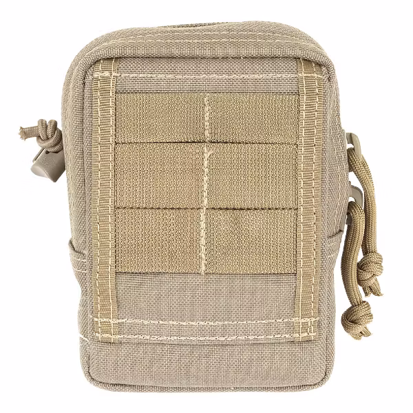 Dragkedjan på huvudfacket försäkrar att innehållet stannar där det ska och den yttre fickan kan expandera eller komprimeras med hjälp av bungee cord. Fickan fästs på väst eller väska med korta TacTie spännen som säljs separat.