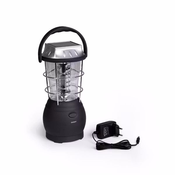Praktisk lykta från Mil-Tec med tre olika alternativ för uppladdning.