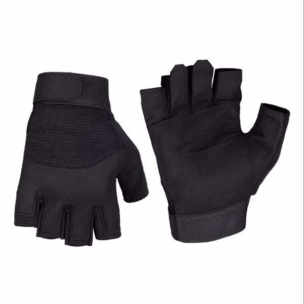 Taktiska Army halvfingerhandskar från Mil-Tec med bra passform med elastiskt material och kardborrelåsning vid handleden för att enkelt kunna spänna åt handsken.