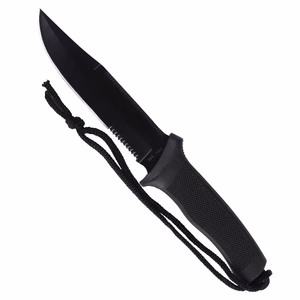 Looks simple, but quality military knife with ergonomic handle additional rubberized anti-slip. The blade length of 15 centimeters coated with black anti-corrosive coating and partially serrated. This universal knife is an excellent choice for all categories of outdoor enthusiasts, from soldiers to hikers and hunters.