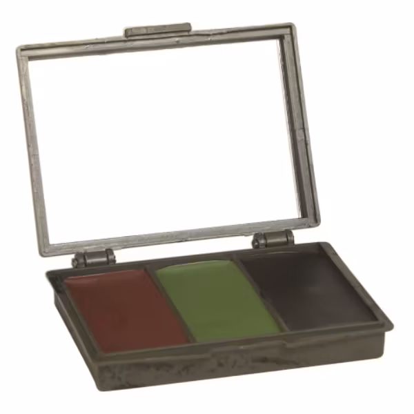 Kamouflage ansiktsmaskering med tre olika färger samt spegel.