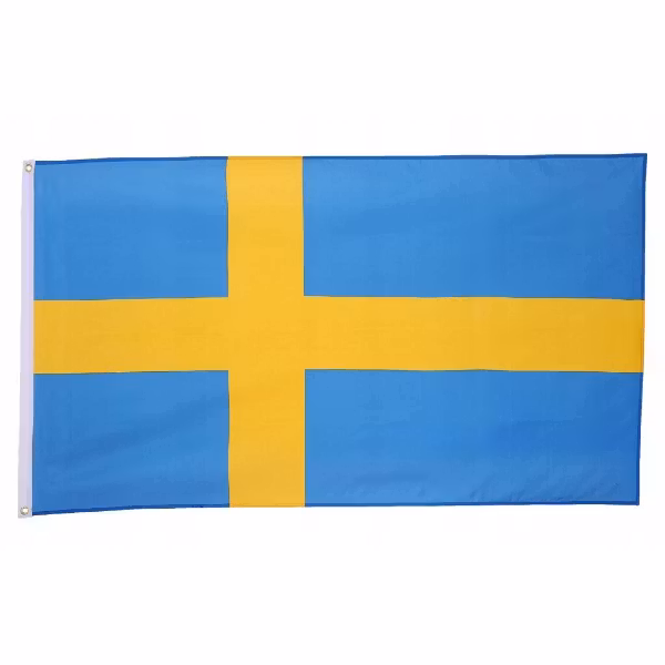 Svenska flaggan med två öljetter för upphängning i flaggstång eller andra typer av anordningar.