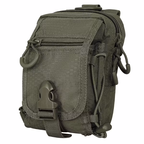 En smidig ficka, säker och mångsidig, perfekt för sjukvårdsutrustning, multiverktyg och övrig accessoarer. Kan enkelt fästas i bältet eller på ryggsäck/väska med hjälp av 2 st. MOLLE-remmar. Huvudfacken försluts med dragkedja och ytterfacket stängs med kardborreband samt qick release-spänne.