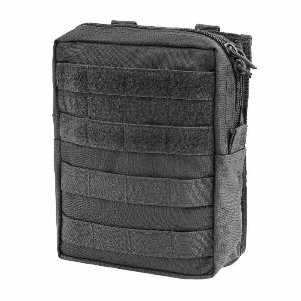 Large universal polyester pocket, attached to the tactical belt. Double zipper, ventilated, elasticized straps and compartment inside, MOLLE system straps and Velcro panel on the front.