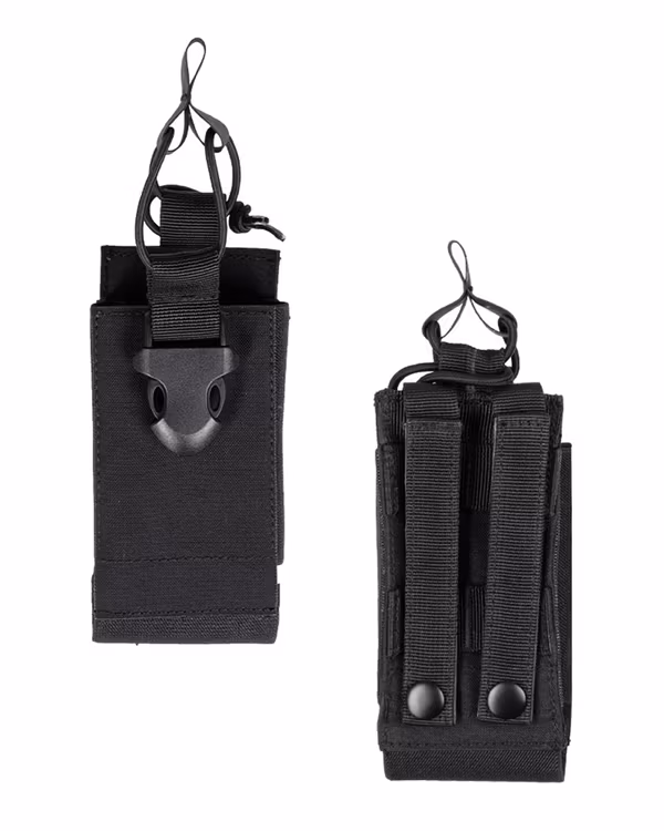 Flexibel öppen radioficka från Miltec som passar en rad olika radios tack vare att fickans sidor är elastiska. Dragöglan ger en snabb åtkomst och lösgör radion på ett ögonblick. Fickan passar även för smartphones (iPhones, Samsung m. fl.)