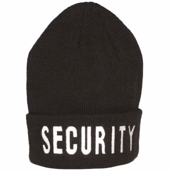 Mössan är i 100% Polyacryl med texten "SECURITY" broderat framtill.