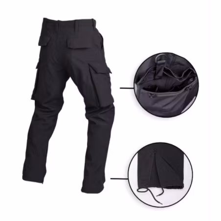 - Pockets: 6 large pockets (2 on the sides, 2 above the knees, 2 on the back), 2 compartments with zippers