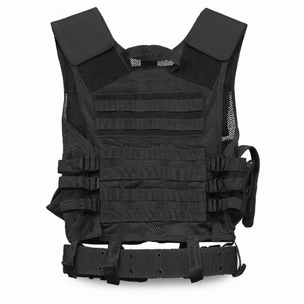 Västen finns i One-size och har justerbara remmar vid sidorna samt kardborre vid axeln så att man enkelt kan ställa in så att den sitter bra mot kroppen. Det finns även MOLLE remmar på ryggsidan som gör det möjligt att fästa ytterligare utrustning om man så önskar. Den kommer även levererad med utrustningsbältet som produktbilden visar.