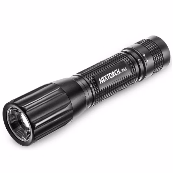 The PA5 is a 360°rotate focus adjustable flashlight, using NEXTORCH® patented Fresnel Lens focusing technology, delivering a smooth transition from broad flood beam to focused beam just by a twist of the 360°swivel head. PA5 utilizes the CREE? XP-L neutral white LED to deliver up to 660 lumens. Runs with one 18650 Li-ion rechargeable battery or two CR123A batteries, and comes with low-profile well hidden USB charging port and an indicator that placed in the tail.