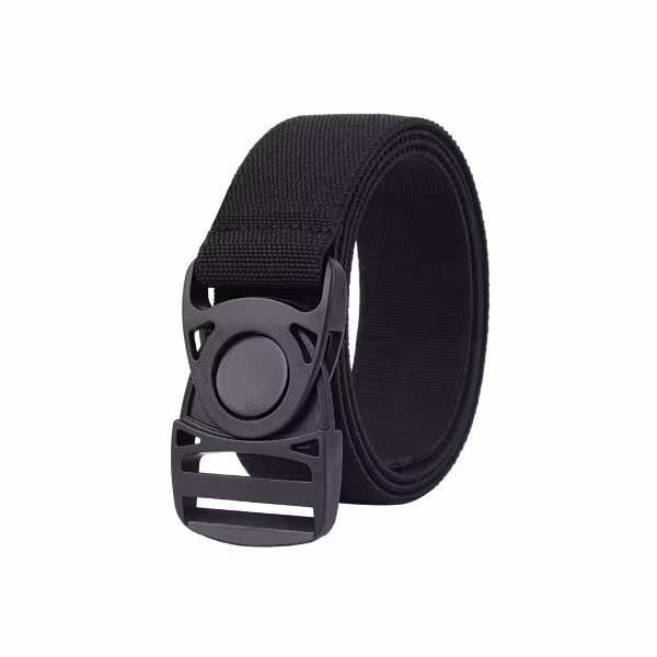 Flygplatsvänligt stretchbälte, följsamt och smidigt. Inga metall delar. Tack vare den uttänkta enkla låsningen på skärpet kan bältet hanteras även i nödläge med handskar på.