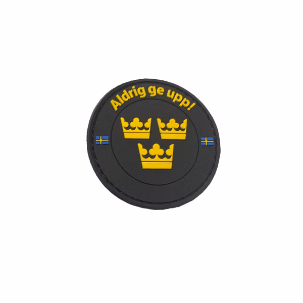 En snygg och stilrent PVC 3D Svensk gummi märke med tre kronor, med kardborre på baksidan.