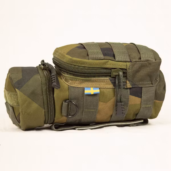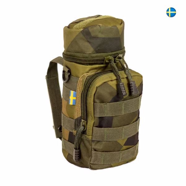 MOLLE kompatibel vattenflaska ficka är ett idealiskt tillbehör till militären och friluftsliv. Fickan passar de flesta vattenflaskor och ordentligt fastsatta på alla MOLLE fästsystem. Fickan har en främre blixtlås ficka med MOLLE remmar på framsidan, blixtlås flip top, MOLLE remmar runt hela fickan och två 2,5cm bredd "MOLLE remmar på baksidan. Fickan har också D-ringar på varje sida och lucka för slang på toppen.