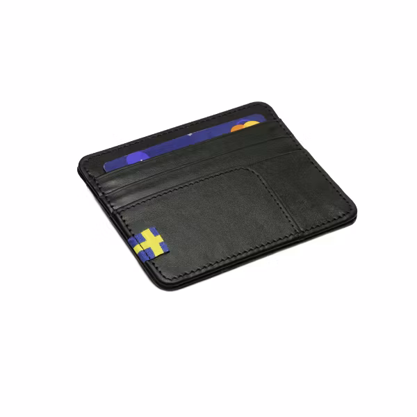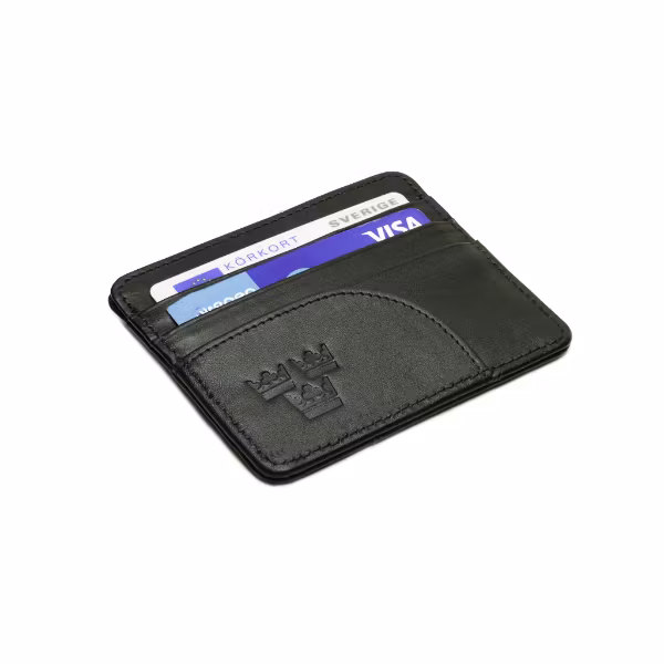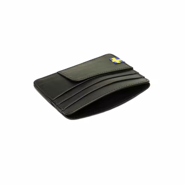 Avskalad och praktisk korthållare i skinn från Nordic Army® med 6st kortfack samt en ficka ovantill för extra kort eller mynt. Framsidan präglas av Royal Crown och logotyp. Baksidan är utrustad av Sv. flagg som en extra fin detalj. Modellen är tillverkad av äkta skinn.