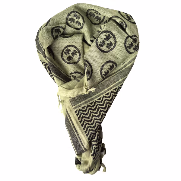 Klassisk Shemagh, palestinasjal med invävd flygvapnets logo i färgen sand, tillverkad av 100% bomull.